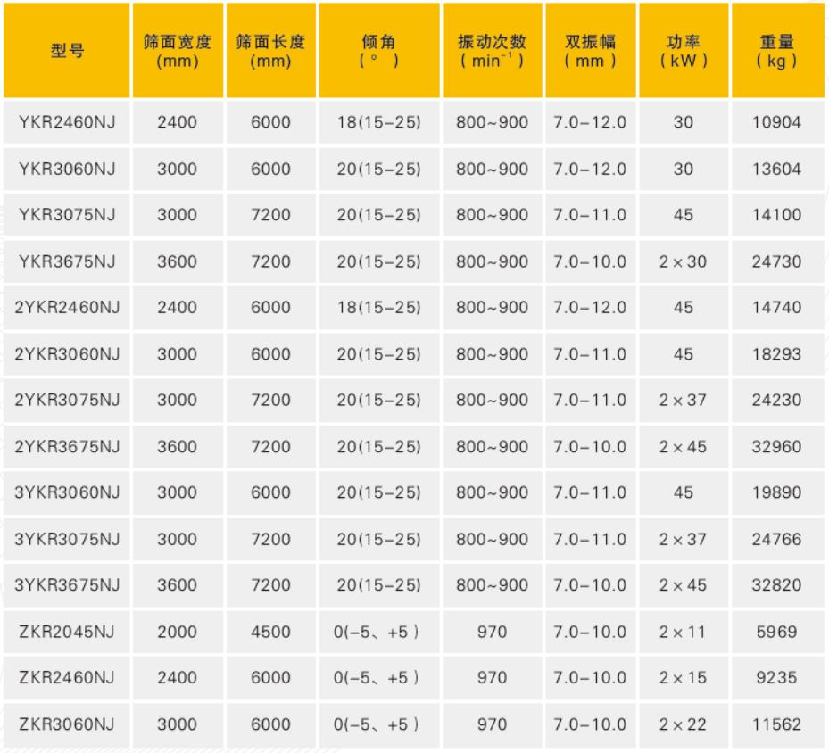 YKR/ZKR-NJ系列重型振動篩適用于冶金、金屬礦山、煤炭等高負(fù)荷、高強(qiáng)度的工況; 一般YKR-NJ系列重型圓振動篩入料粒度≤300mm,分級粒度3~150mm;ZKR-NJ系列重型直線振動篩入料粒度≤ 50mm,分級粒度0.25~50mm;