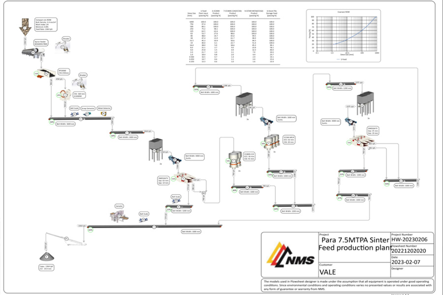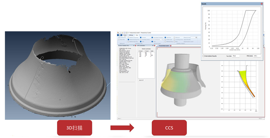 結(jié)合信息化技術(shù)開發(fā)出的一款具有自主知識產(chǎn)權(quán)的破碎機(jī)設(shè)計優(yōu)化模擬軟件Cone Crusher Simulator,配合NMS的流程設(shè)計軟件Flow sheet designer提供設(shè)備生產(chǎn)性能預(yù)測,為前期工藝流程設(shè)計中的設(shè)備選型提供有效的數(shù)據(jù)支撐,降低工藝設(shè)計期望與實際生產(chǎn)效果之間的差異。